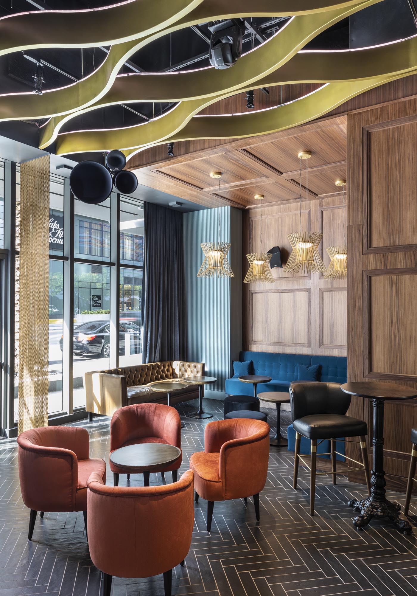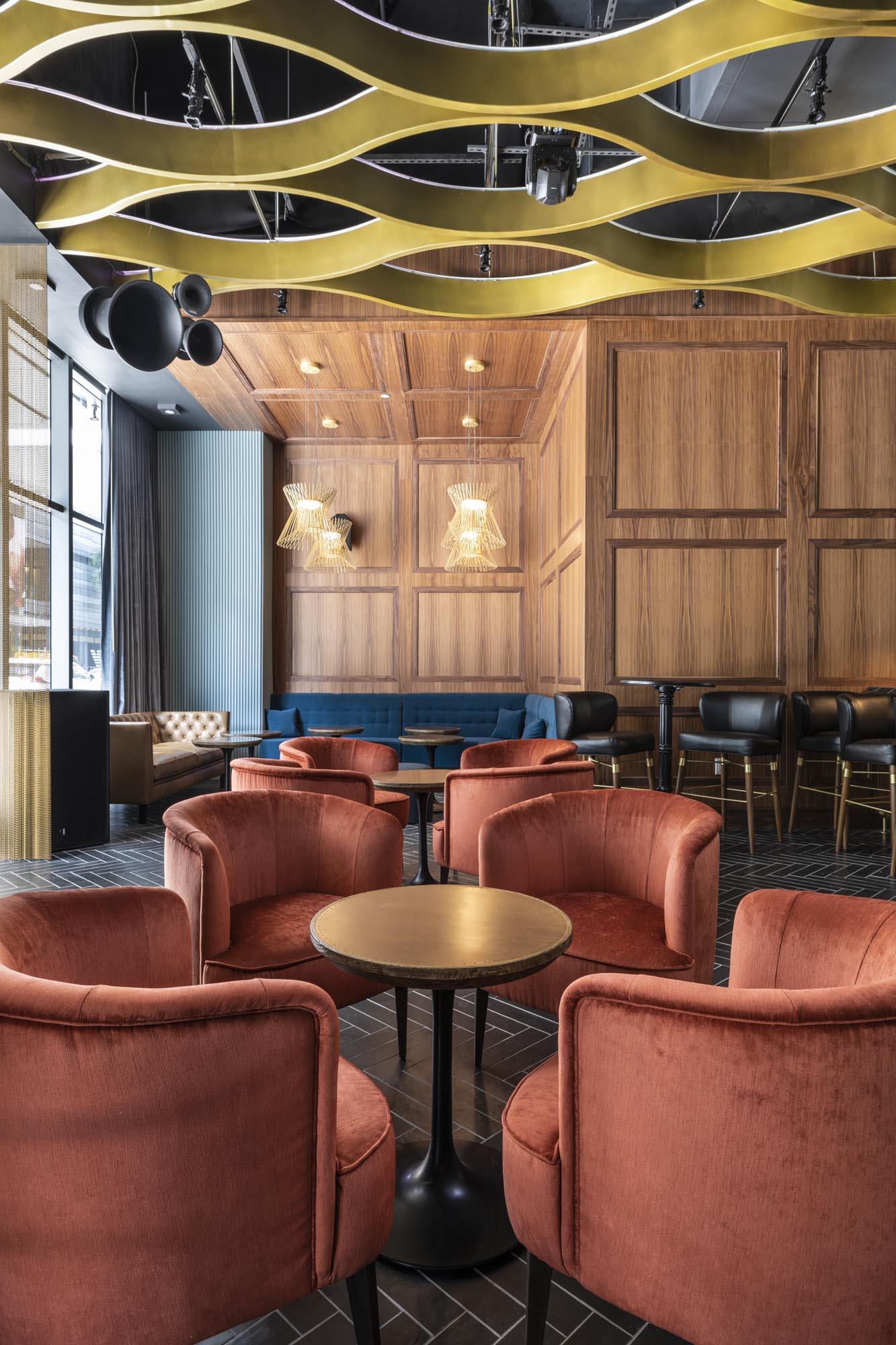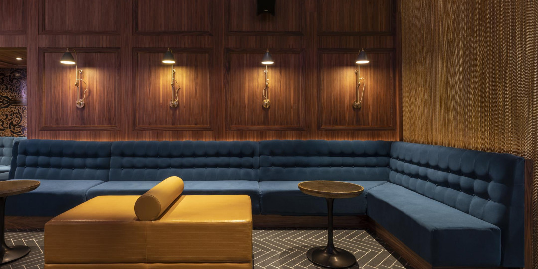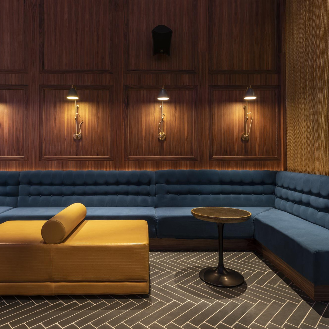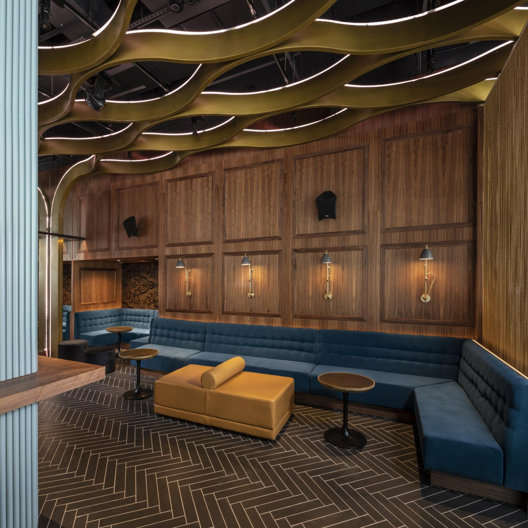 Mark’s vision was to create a sophisticated modern twist on a classic Speakeasy style, with the interior of this venue creating an homage to the style and design ethos of the 1920s. Including wood and button tuft upholstery and a soaring and undulating ceiling enhanced with LED lighting.