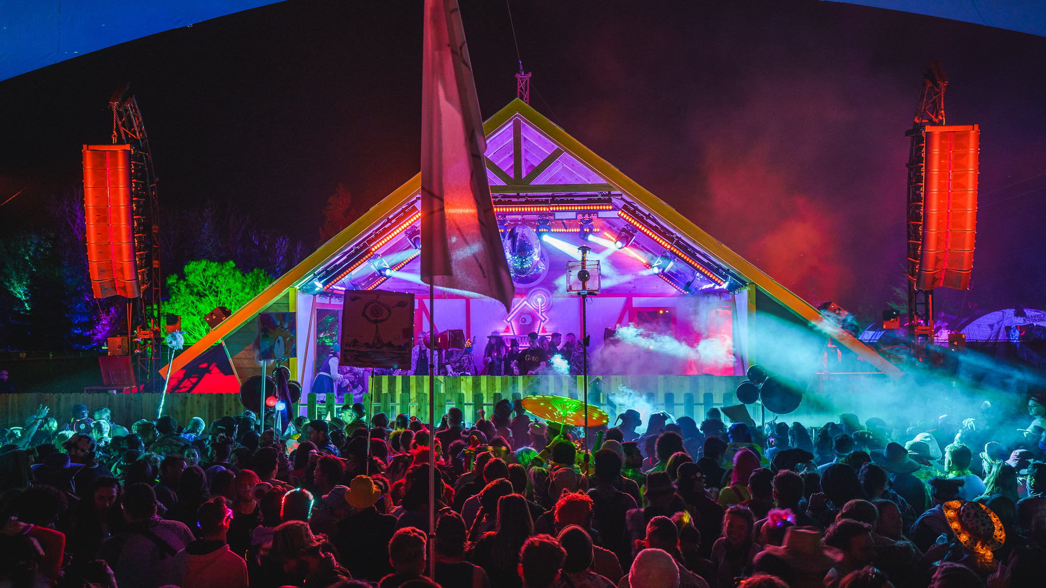 An important aspect of the brief was meeting the demands of the strict county-enforced noise regulations. This was not only integral to the brief but one of the biggest challenges of the outdoor installation. “Offsite noise has been an issue in previous years, but we knew it was something Void strives to remove, with their carefully considered solutions for this problem” smiles Paul knowingly. “The Arcline 8 system enabled us to fly it up, and have downward-facing control, in a way that point source can’t facilitate. This meant we had complete control of the sound to the areas we wanted and could minimise the audio leakage into the areas where it wasn’t welcome.”