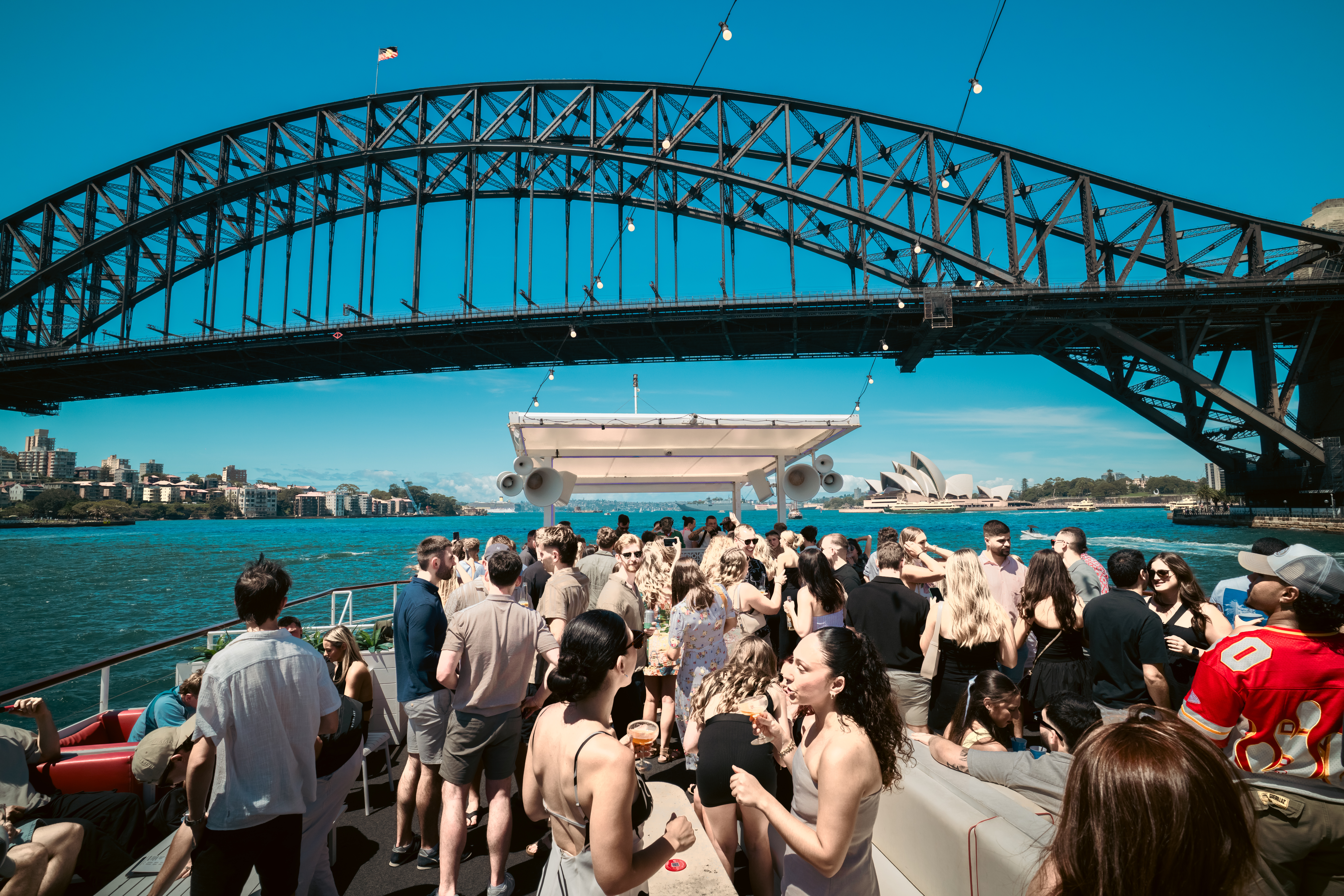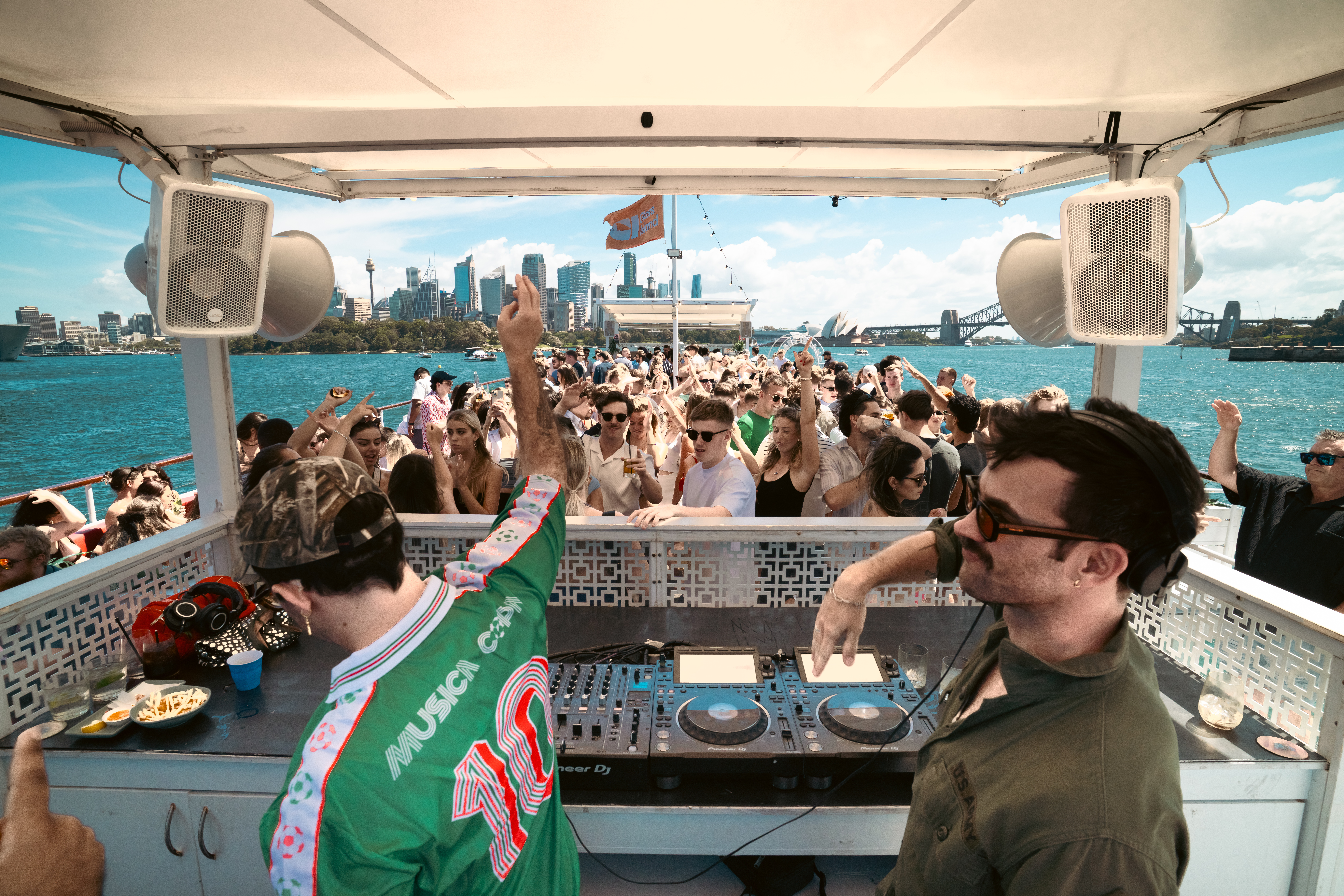 Glass Island is a custom built, three level entertainment vessel moored in Sydney Harbour. With a capacity of 470 guests across 780 sqm, it has been purposefully designed to create unforgettable experiences from every angle. The Top Deck offers an open air, Mediterranean inspired beach club framed by 360° harbour views. The Middle Deck channels the vibrancy of Miami pool clubs, centred around a striking 7m mint tiled bar and wraparound glass walls. Below deck, guests discover an intimate cocktail lounge with a moody, relaxed atmosphere. Hosting internationally renowned DJs is part of the venue’s DNA, so the sound system needed to deliver on every level.