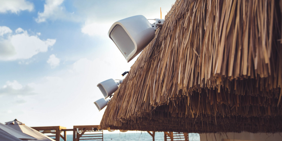The day/night venue offers guests the chance to chill and relax on the beach in a stylish setting, with a restaurant and bar that transform seamlessly from a lazy beach day vibe to cocktail and party night-time. Needless to say, music plays a central part in the transformation of the atmosphere from day to night and so the audio system needed to be robust and adaptable to these changes, as well as the outdoor environment.