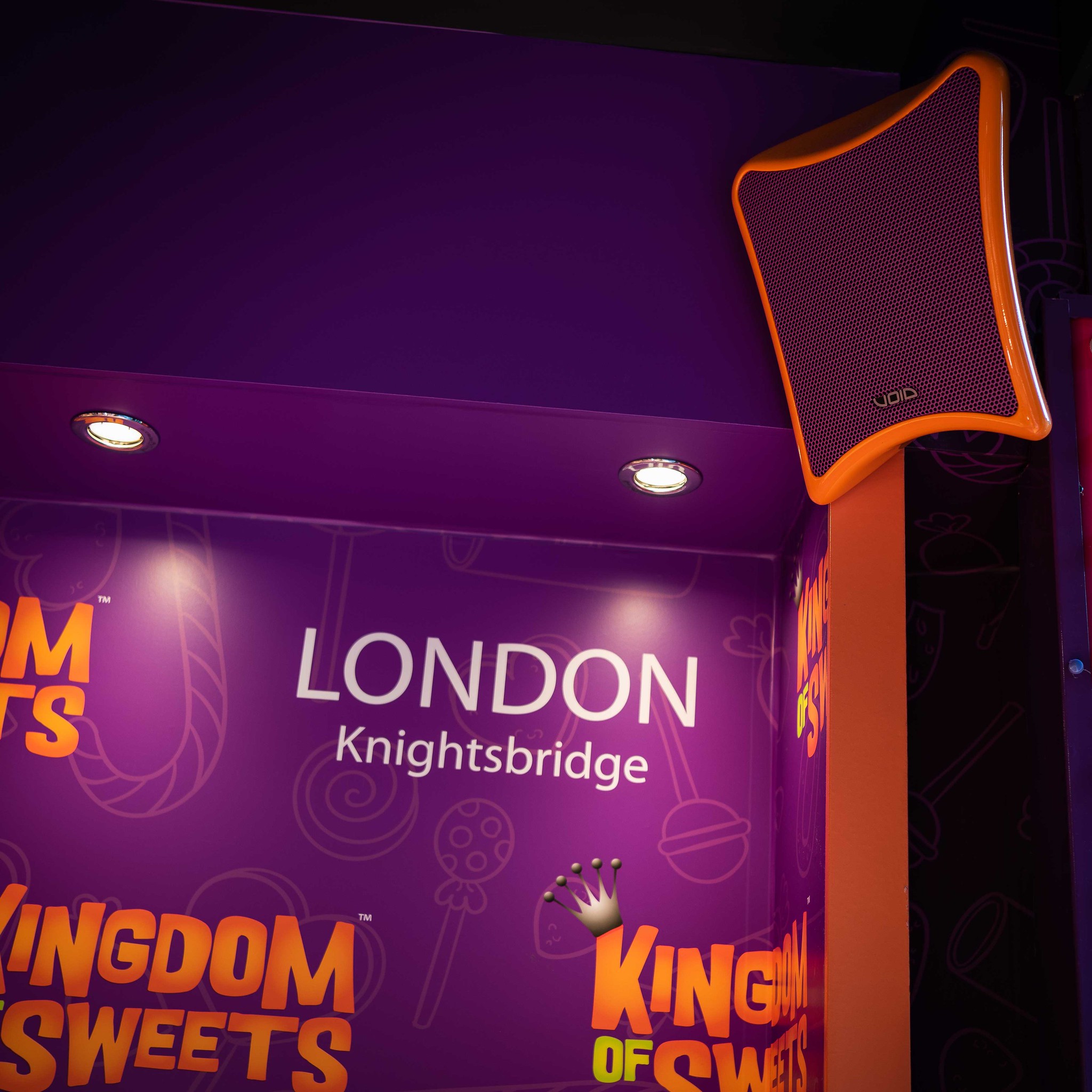“We had been asked to specify a sound system to ‘up the ante’ on the customers’ audio experience, whilst providing a bespoke design complementing the eye-catching and colourful presentation synonymous with all Kingdom of Sweets stores. Our client specifically asked for a clean sounding, bass-heavy system – with the audio reflecting the visually flamboyant experience for customers coming in to shop for their sugary goodies. It was clear that Void were the audio manufacturer to work with.”