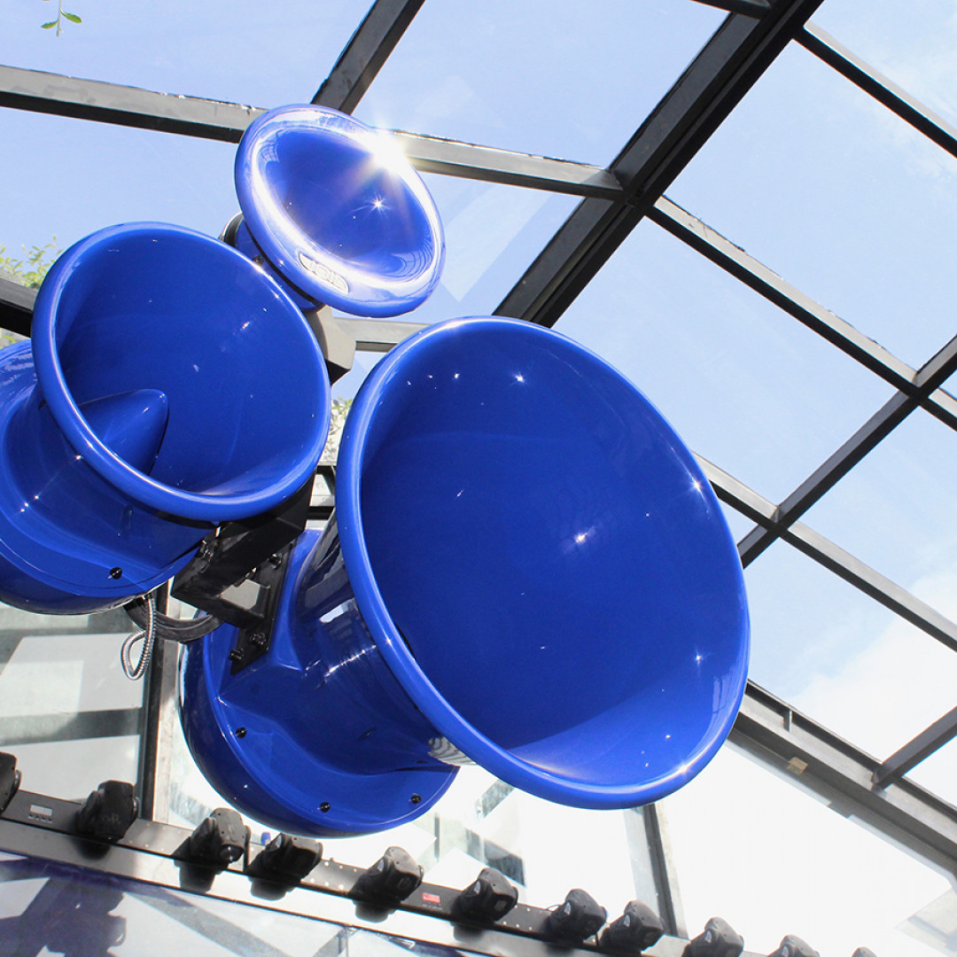 For the VIP and side Booths, the Venu series was again used but this time with custom electric blue body and gold grill.