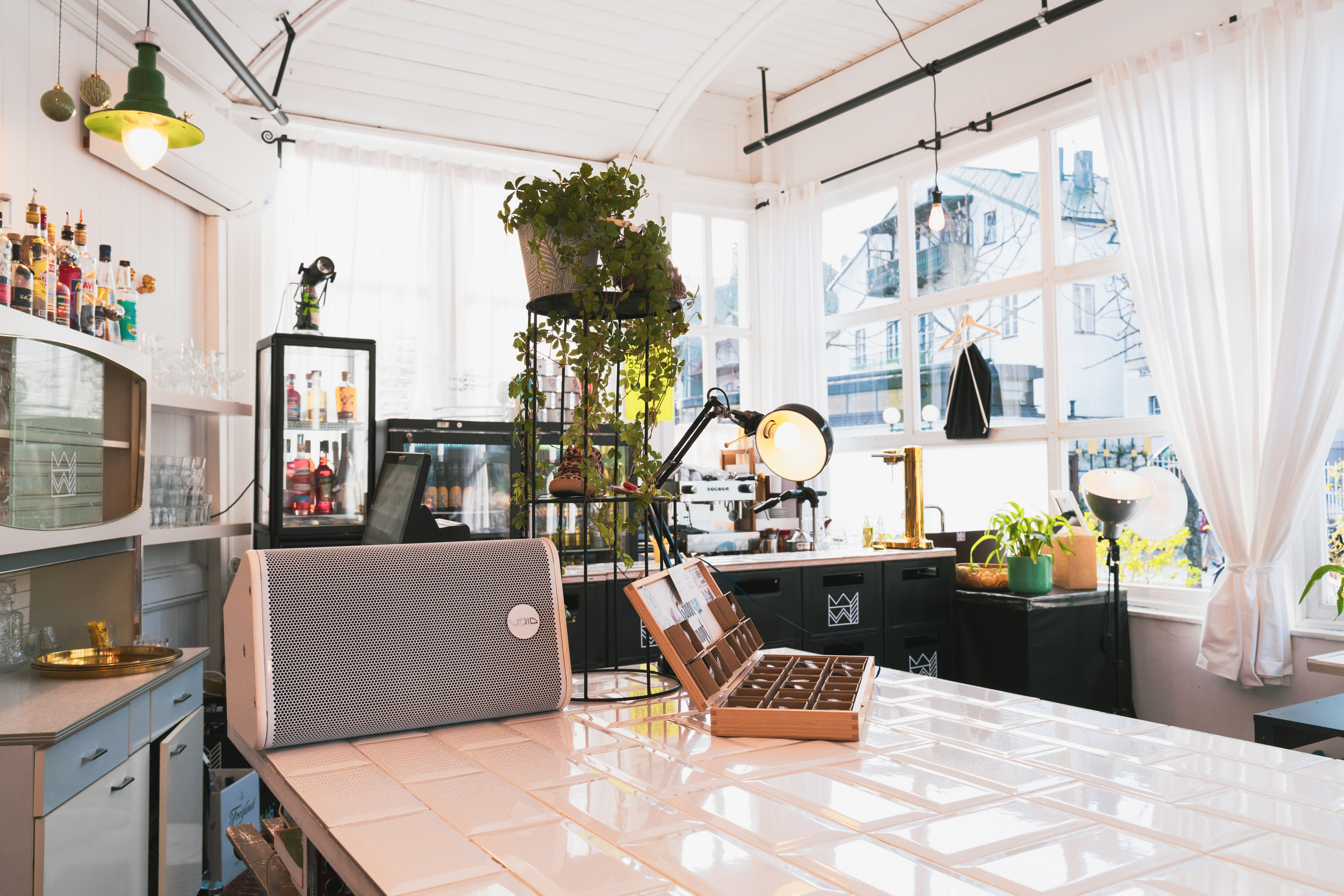 Katharina started looking into making this a reality. Wanting to make the most of its tiny footprint and give a nod to its past, the venue cleverly transforms from day to night, with the point-of-sale area converting into a dance floor and performance area for DJs and musicians. This unique concept called for a sound system that could seamlessly adapt to both daytime shopping and night-time revelry.