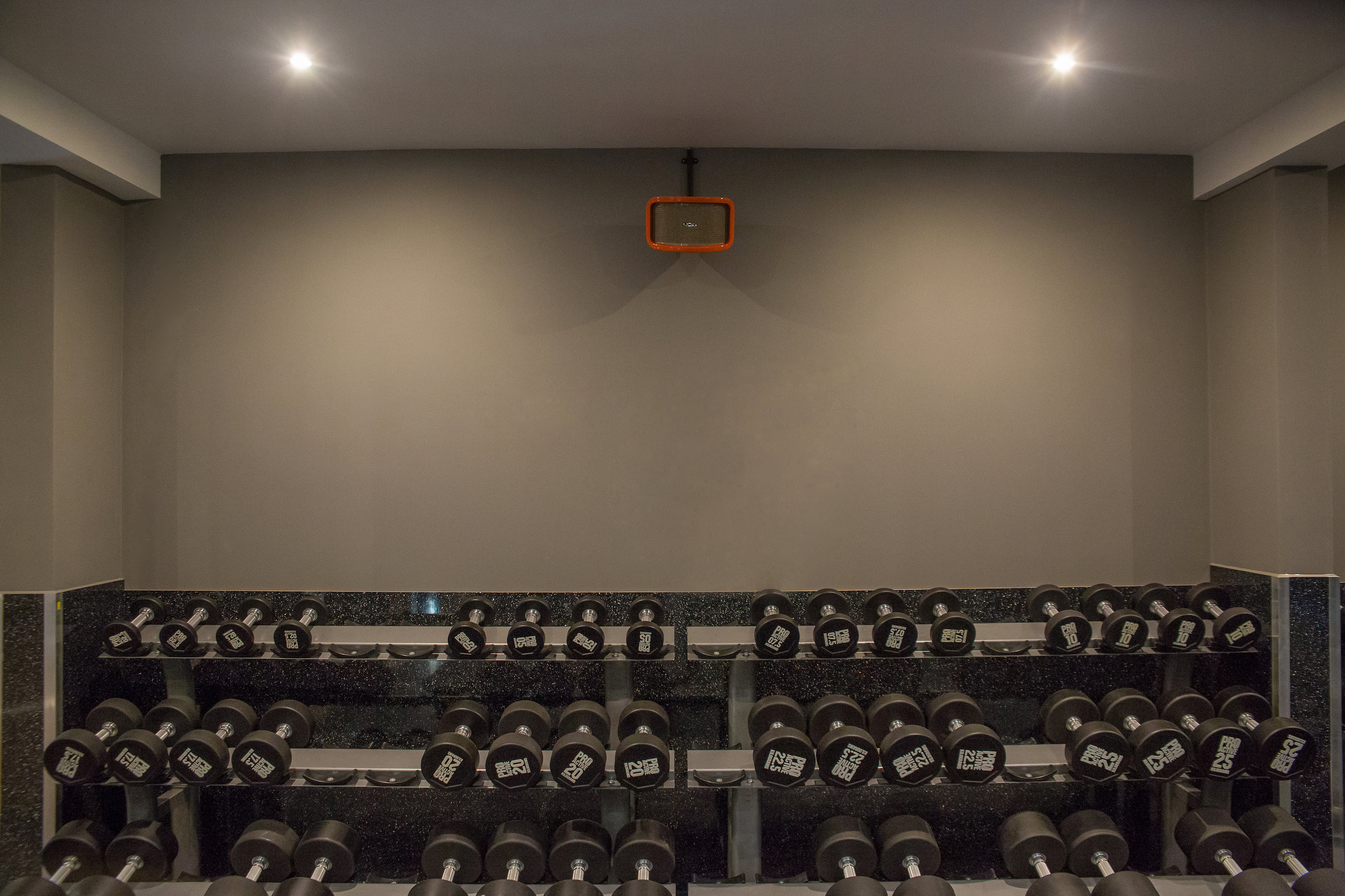 The system is a multi-zoned installation complimenting the industrial feel of the gym. It includes fifteen Cyclone 55s and four Venu Subs, installed by Neuron Pro Audio.